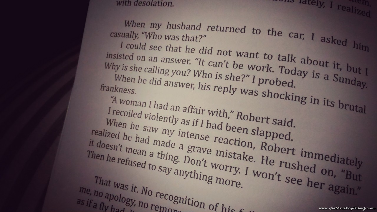 Saw this part when I was reading the book.I just can’t imagine what would I do if I find out that my husband has a mistress. But one thing is for sure, i will not tolerate it and will not be silenced.