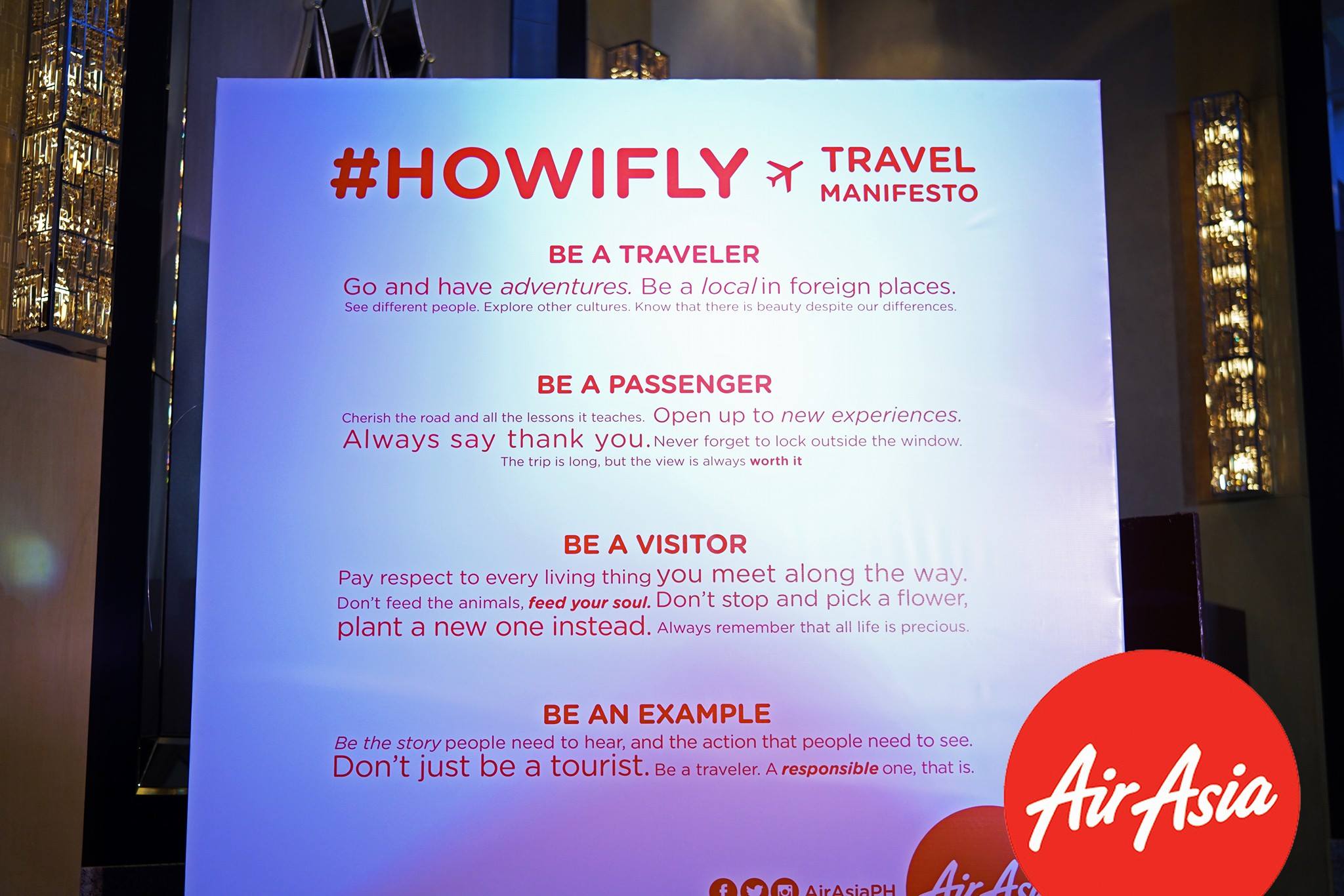 “#HowIFly calls for responsible travel, and the value of generating a positive impact on communities, wildlife, and the environment. Over 1.5 billion travellers are expected to travel each year by 2020, and we have the power to change our world by simply becoming aware and responsible of our actions. More than an airline operator, AirAsia is a company that understands people and the true needs of discerning travellers. We recently gave travellers new reasons to explore new ground with the #WhyIFly campaign, an initiative set on driving more people to pursue their travel goals and spread the love of storytelling through beautiful photographs and hims. Now, we shift from inspiring travel to steering these travellers towards more responsible ways of traveling with #HowIFly,” said Philippines Air-Asia’s CEO Dexter Comendador.