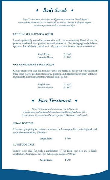 Here’s the complete details about the Luxe Ultimate Relaxation Package which I availed during my visit. It is a complete renewal treatment and pampering from head to toe. It starts with a Royal Foot Spa where they use Cuccio Naturale, an-all natural and well-known Italian brand , followed by Algotherm Body Scrub and finishes with a Swedish Aromatherapy Massage.