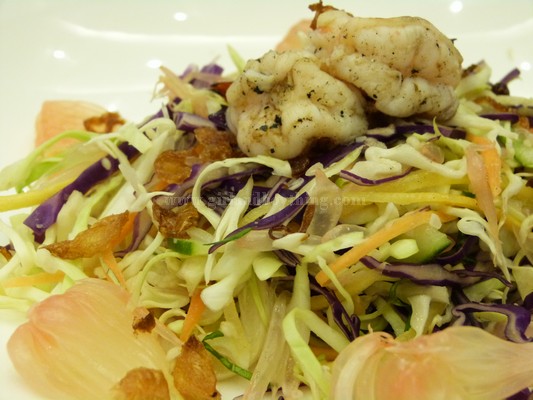 Goi Buoi Tom Nuong(Php185)- Pomelo salad with grilled shrimps, cabbage, cucumbers and Asian basil.
