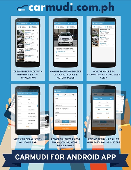 CARMUDI mobile app features the same usability and filter functions where customers can filter searches from Brand new or second hand, whatever car brand it is, color, name it Carmudi App will help you find it!. Users can also share listings on various social platforms to gain opinions from friends and family if buyes are unsure prior to buying the vehicle of his choice. Buyers can also the favoriting features of the Carmudi app in order to get back to it directly and get instant notifications on their favorite rides.