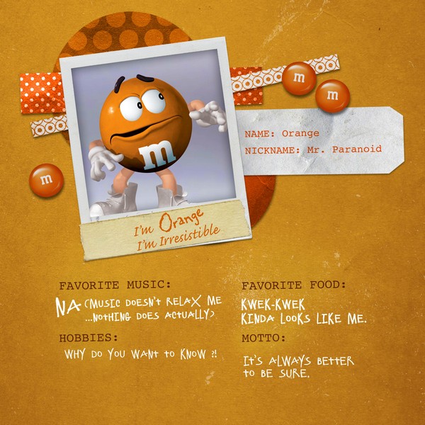 Also known as “Mr. Suave”, Blue has a James Dean personality that the ladies love. He is known to be the relaxed and easy going M&M’S character. Cool and talented, Blue enjoys playing his Saxophone during his leisure time. You can expect a chillaxing day when hanging out with Blue. His ideas of fun are road-tripping and chilling on the hood of his car while listening to Herbie Hancock.