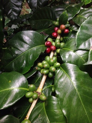 As the berries begin to ripen, the berries becomes yellow and then light red and finally darkening to a glossy deep red. At this point they are called ‘cherries’ and are ready for harvest.