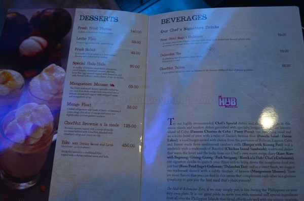 The Hub @Kilometer Zero Bar And Cafe is located in Rizal Park (in Bulwagan ng Kagitingan) where you can hang out while watching people strolling in the park. Since there’s also a ticketing office of 2GO Travel there, you can buy your ticket, book, stay, dine and check out The Hub @Kilometer Zero Bar And Cafe’s food menu and have a great dining experience.