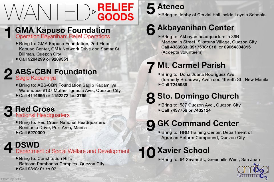 For Donations of relief goods here are some drop-off points…