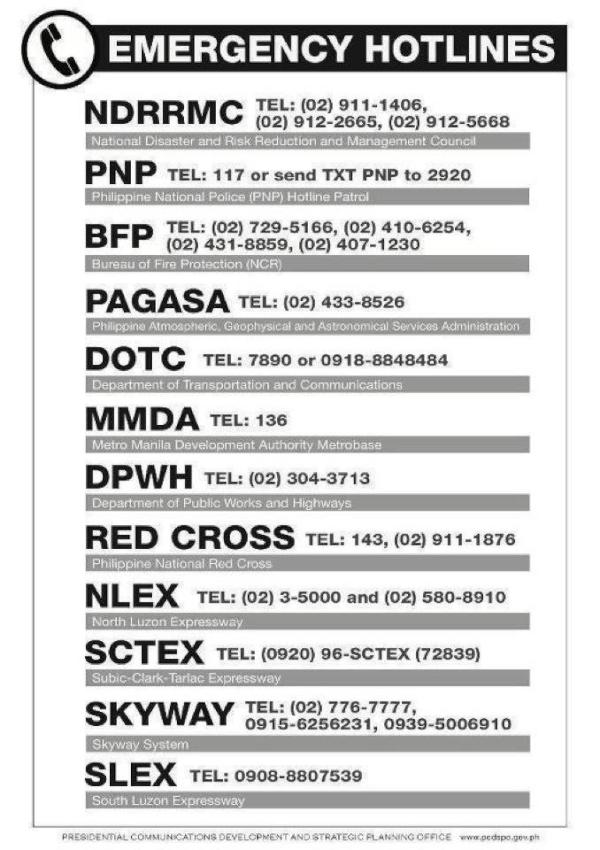 Here are other Emergency contact numbers that you can use…
