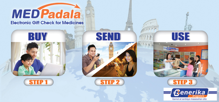 MedPadala Electronic Gift Check (MedPadala e-GC) is Generika Drugstore’s newest offer specially created for OFW’s and breadwinners who are far away from their families. But don’t worry even if you are not an OFW or a breadwinner you can still avail of this offer. It is actually for everyone. MedPadala Electronic Gift Check (MedPadala e-GC) is an ‘electronic gift check’, developed by Generika Drugstore which one can send to anyone (i.e. relatives in the provinces or loved ones anywhere in the Philippines) and can be redeemed by the recipient to purchase medicines in any Generika Drugstore branches.