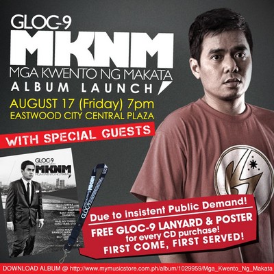 This August 17, 7 p.m., Gloc-9 will be having a special MKNM show at the Eastwood Central Plaza featuring Ebe Dancel, Denise Barbacena, Q-York, Mike Swift, Silent Sanctuary, among other.