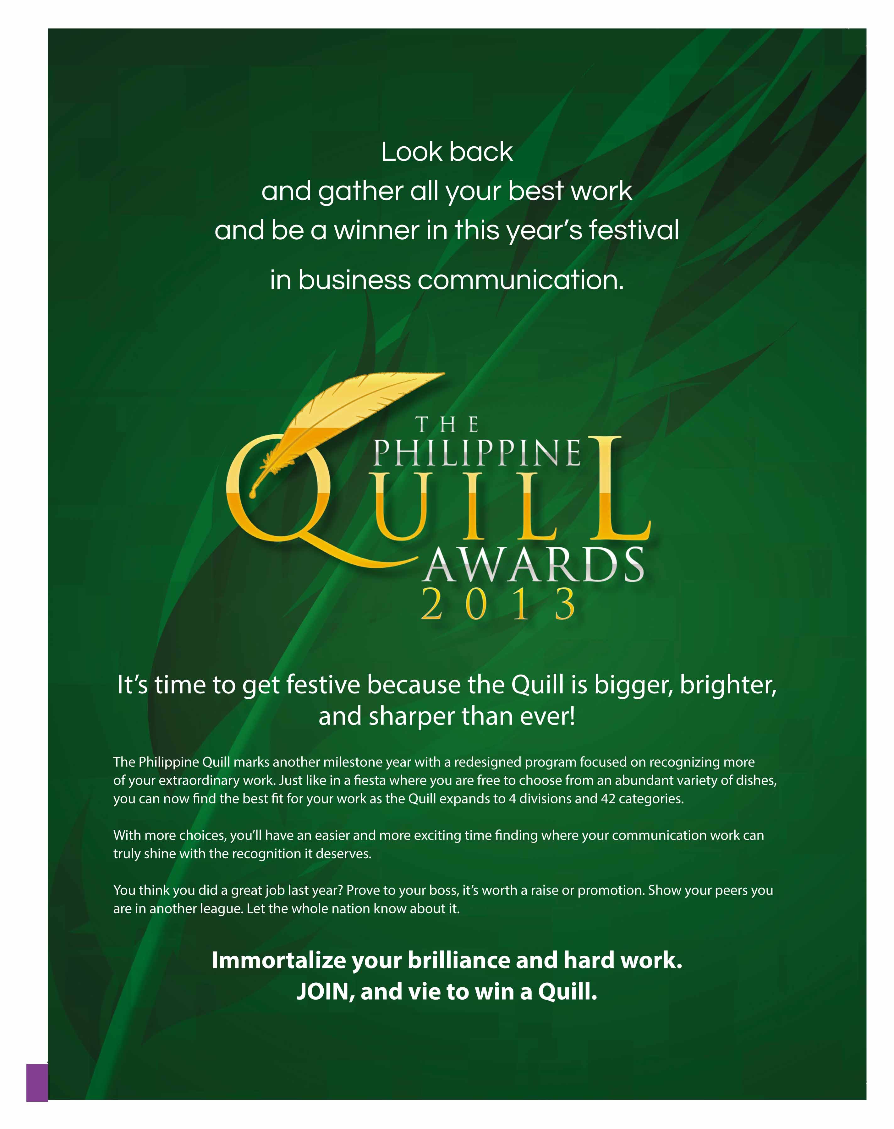 DEADLINE OF ENTRIES for The Philippine Quill Awards 2013