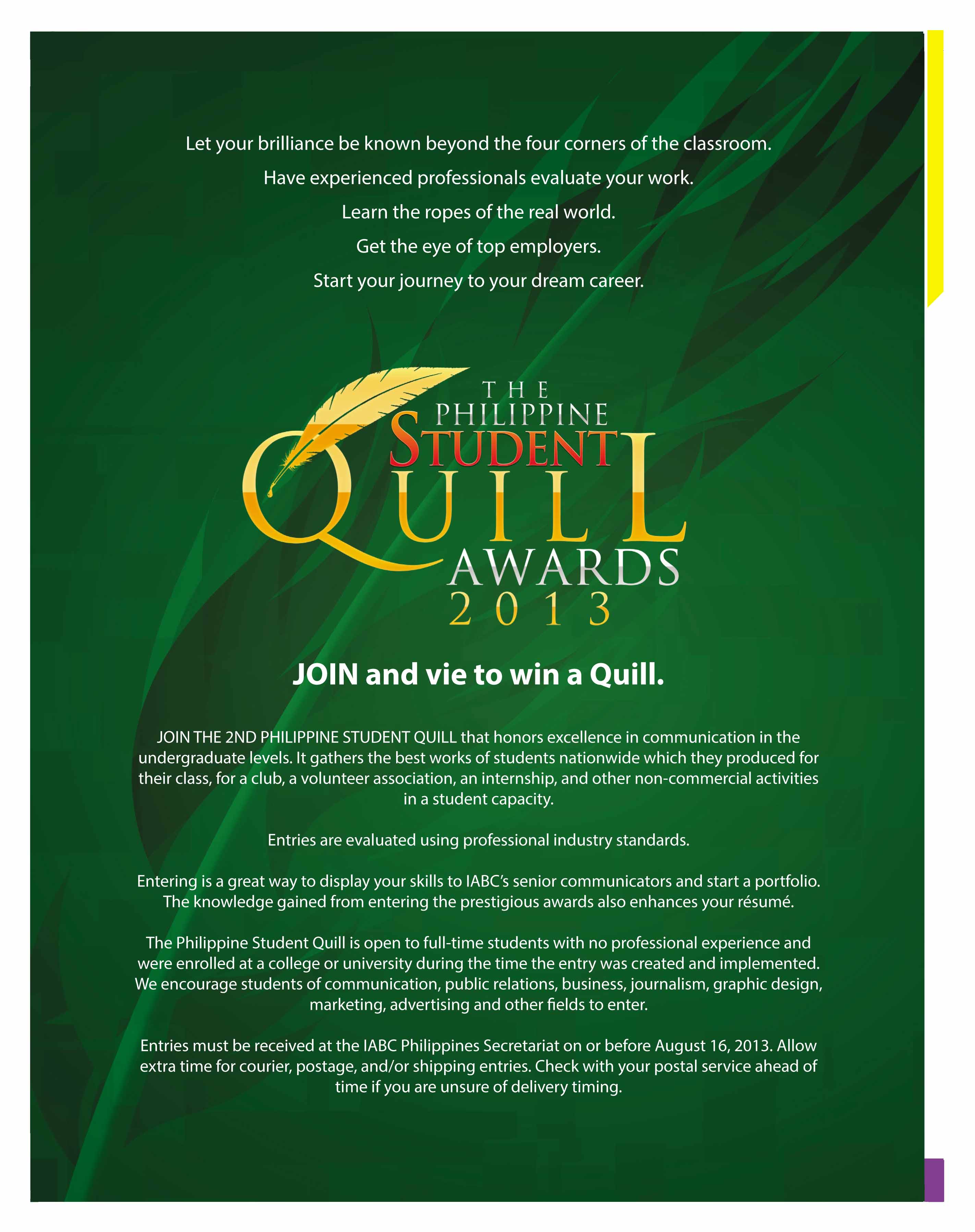 HOW TO ENTER: http://iabcphilippines.com/ph-student-quill/how-to-enter/