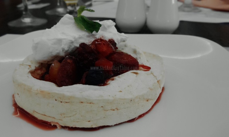 And for the last dish… The mouth-watering Pavlovas. Made of Airy Meringue topped with mixed berries and honey-calamansi Viniguarette. This dessert is really one of a kind for its taste. I love how each berry variants give a different flavor with each bite. I love it!