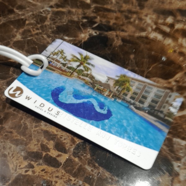 After receiving our room keys, a personalized WIDUS Hotel and Casino bag tag were given to us as part of their welcome treat to their guests.