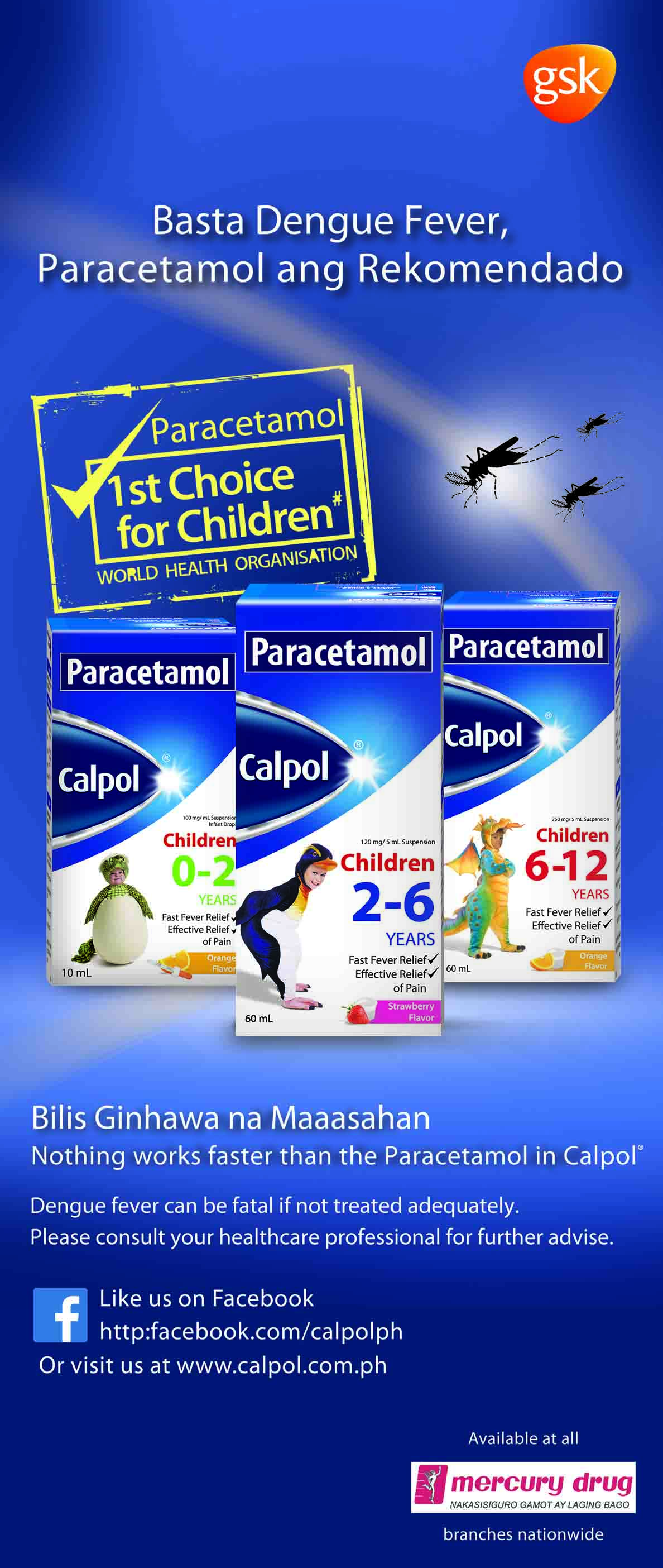 GlaxoSmithKline maker of Paracetamol Calpol in partnership with Department of Health and the Philippine Pediatric Society spearheaded a campaign called “Aksyon Laban Sa Dengue: A Dengue Fever Awareness and Education Program” which raises awareness about Dengue. In addition, a Baranggay Caravan will be held in order to educate and engage people in the community.