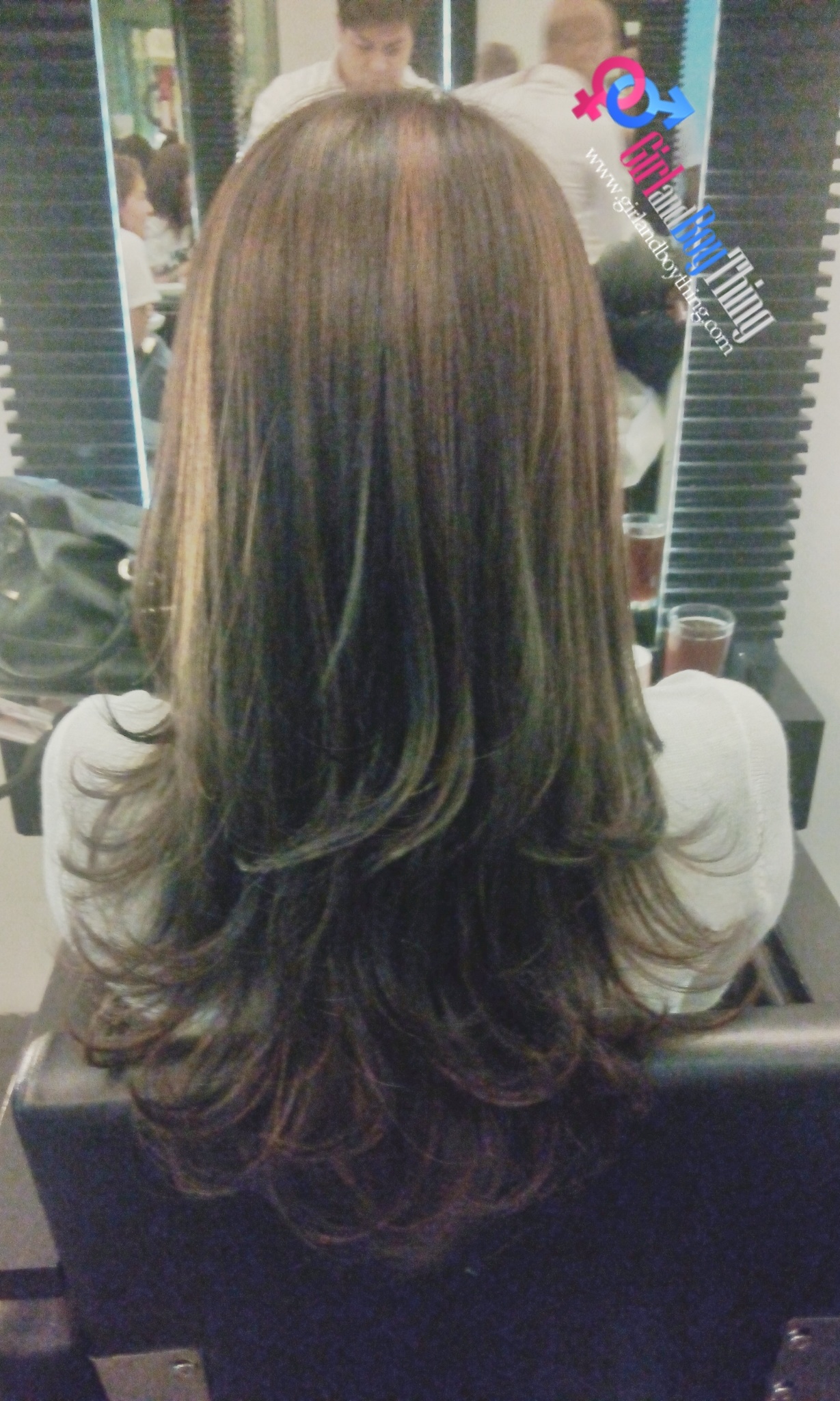 After cutting my hair, he said “will do highlights and color your hair. Ano ayaw mo na color?” And I said “I don’t like bright and vibrant colors like red, and too light shades. I like Brown but I have no idea what shade”. I have long wavy black hair so I wanted to give it a try for a change 🙂