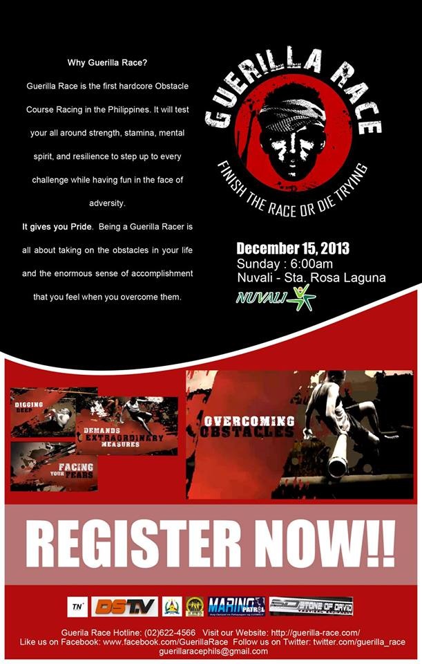 Guerilla Race is not just an ordinary race. Greater challenges awaits all participants that will put their strength, stamina, mental spirit and resiliency to test in all the obstacles.