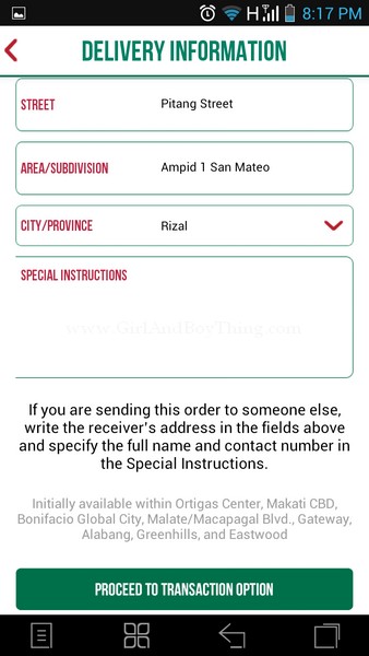 3. Check your delivery information and you can indicate special instructions like landmark, gate color and others.