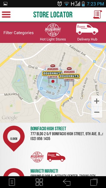 Finding a Krispy Kreme store is now quick and easy. With Krispy Kreme mobile app locator feature, customers can easily identify the Krispy Kreme store nearest to their location, from Luzon all the way to Visayas and Mindanao. Simply tap on the store names for their very own Krispy Kreme map to show the directions.