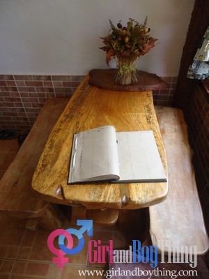 Inside the Homestay is a small reception area designed with native items.