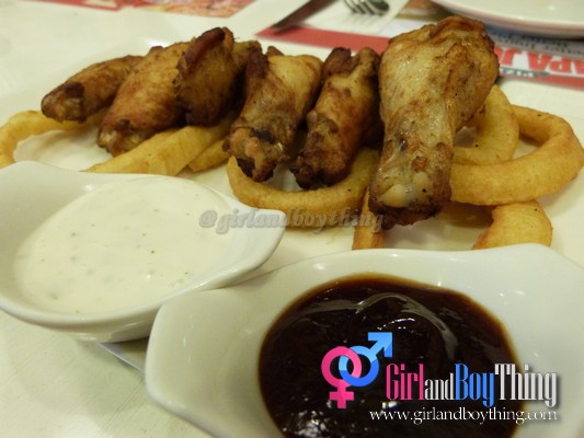 Served with onion rings and two dips. You can choose from Barbecue sauce, Garlic Ranch and Honey mustard sauce. My personal choice is the Barbecue sauce, it compliments with the taste of the chicken. For additional dip just add Php20.