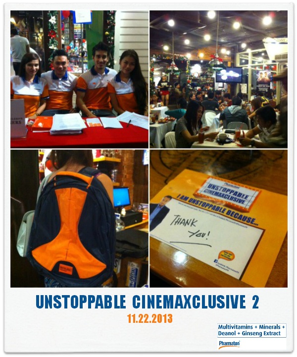 Before the event, promotions were aired to key radio stations from November 4 to 15 listeners were encouraged to call in and answer questions about being an unstoppable character or actor. A digital raffle via the Pharmaton Cinemaxclusive App was also launched on Pharmaton’s Facebook fan page.