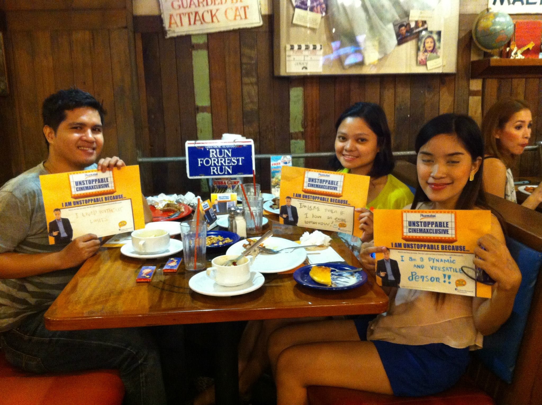 Eighty-five (85) lucky winners plus 2 of their friends were chosen via digital raffle for the Pharmaton Unstoppable Cinexclusive happened last October 4, 2013 , a night full of unstoppable perks including Pharmaton Items, dinner & drinks, free photo booth, at Bubba Gump Shrimp Co. at Greenbelt 3, and an exclusive movie screening of the movie “Gravity” in 3D Starring Sandra Bullock and George Clooney.