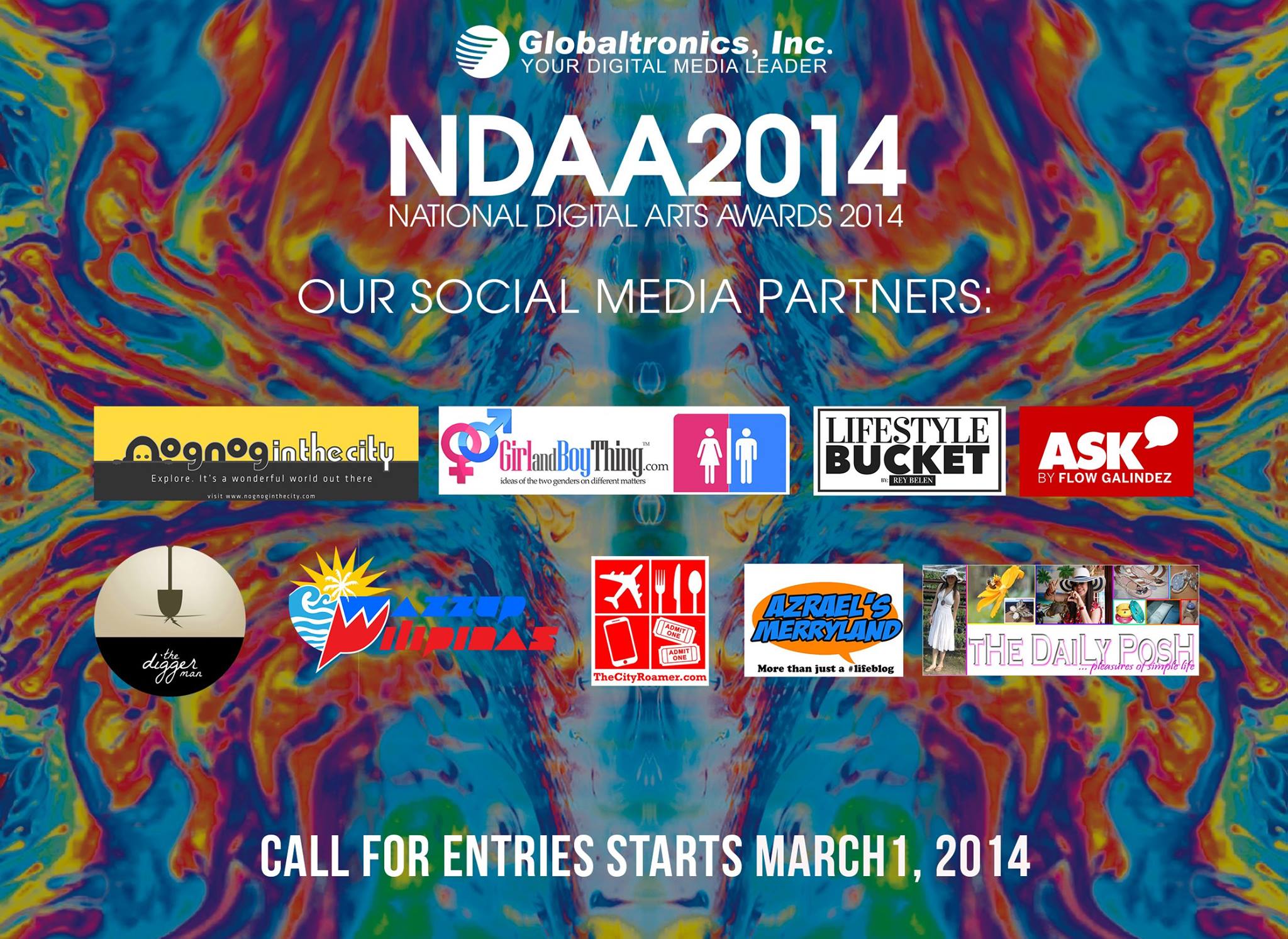 The National Digital Arts Awards (NDAA), launched by Globaltronics Inc in conjunction with its 10th year anniversary, is an advocacy that aims to highlight the skills and talents of young digital artists in the Philippines. The NDAA seeks not only to recognize the talents of the artists but also to showcase the capabilities of the local digital art community. Globaltronics sees the potential of homegrown artists and the company believes that given the chance, Filipino talent can excel globally. As a company that specializes in digital out of home (DOOH) advertising, Globaltronics acknowledges the role that digital arts play in the development of the nation. It believes that a higher standard in art and ideas is important in the economic and artistic rise of society. Globaltronics invites everyone from digital artists and enthusiasts to advertisers and designers to take part in a campaign that celebrates the beauty of art and highlights a Philippines that’s taking shape.(Source: http://creatives.globaltronics.net/ndaa)