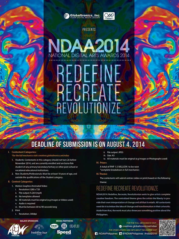 For more information and inquiry about National Digital Arts Awards 2014 you may visit: