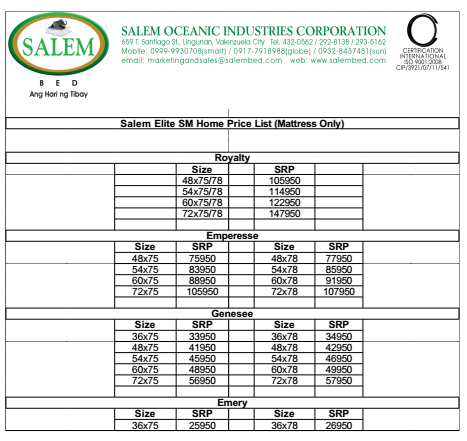 For years, SALEM has been synonymous to comfort and quality with the kind of mattress they are producing, making it one of the acclaimed players in the field. SALEM’s Elite Collection really exudes the best of both worlds because of it’s simplicity and elegance giving different market a good choice for mattress.