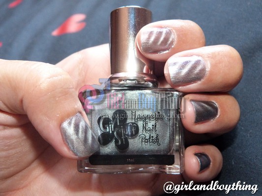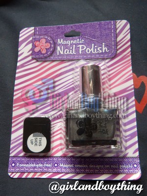 There is also another amazing Nail Polish from Girl Stuff and I recommend that it is a must try. Girl Stuff Magnetic Nail Polish (Php249.75). With this nail polish comes with a small magnet which will make a design once this nail polish is applied to your nails(how? after applying the Girl Stuff Nail Polish, simply place the magnet over the nail for about 5-8 seconds close enough not to touch the nail and then you will see the result already).