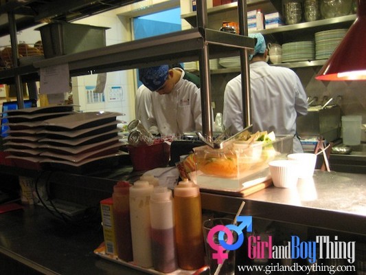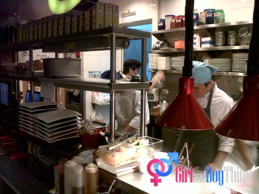 This resto has a semi-open kitchen where you can see how they prepare your order. If you can observe in the picture you can see on the kitchen counter where they put their cooked orders before garnishing, there are two lights hanging. I believe this is for them to see and check the food for any unwanted elements in your order before being served.This is good because the customers will definitely served with good quality foods.