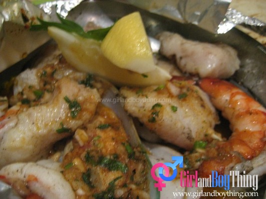5. Sizzlin’ Butter Seafood “Foil Boil”(PHP420)– Prawns, mussles, clams and dory wrapped in a foil pouch fresh lemon and parsley, served with grilled sourdough. I love the taste of the seafood, the sauce is quite salty but the taste is good.