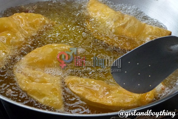 6 . Place Empanadas in a plate topped with plenty of paper towels to blot oil. Serve in another clean platter and with sweet chili dip or garlic vinegar on the side.