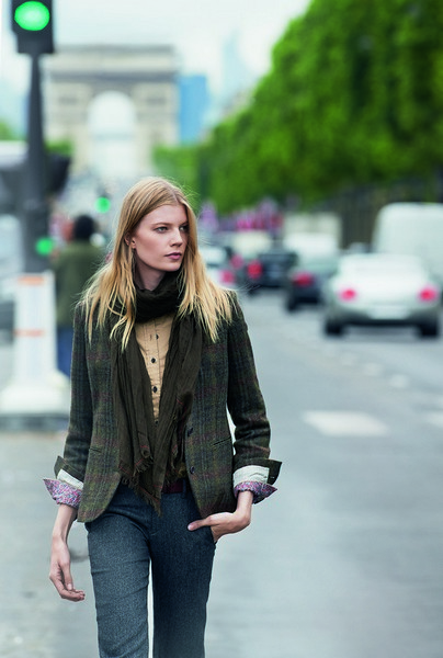 Ines de la Fressange said, “I wanted to retain the spirit we created in the Spring Summer collection. I love things that are unadorned, genuine, and comfortable to wear. For the Fall Winter items, I wanted to create lovely things that have the same elegance. One of the traditional European fabrics I wanted to include was tweed. With coats and jackets, the fabric and cut are important, and it was a real treat for me to be able to incorporate playful details and enjoy styling the clothing freely.