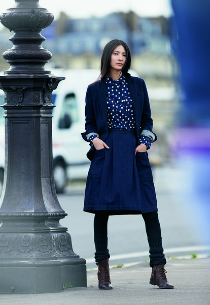 Ines de la Fressange said, “I wanted to retain the spirit we created in the Spring Summer collection. I love things that are unadorned, genuine, and comfortable to wear. For the Fall Winter items, I wanted to create lovely things that have the same elegance. One of the traditional European fabrics I wanted to include was tweed. With coats and jackets, the fabric and cut are important, and it was a real treat for me to be able to incorporate playful details and enjoy styling the clothing freely.