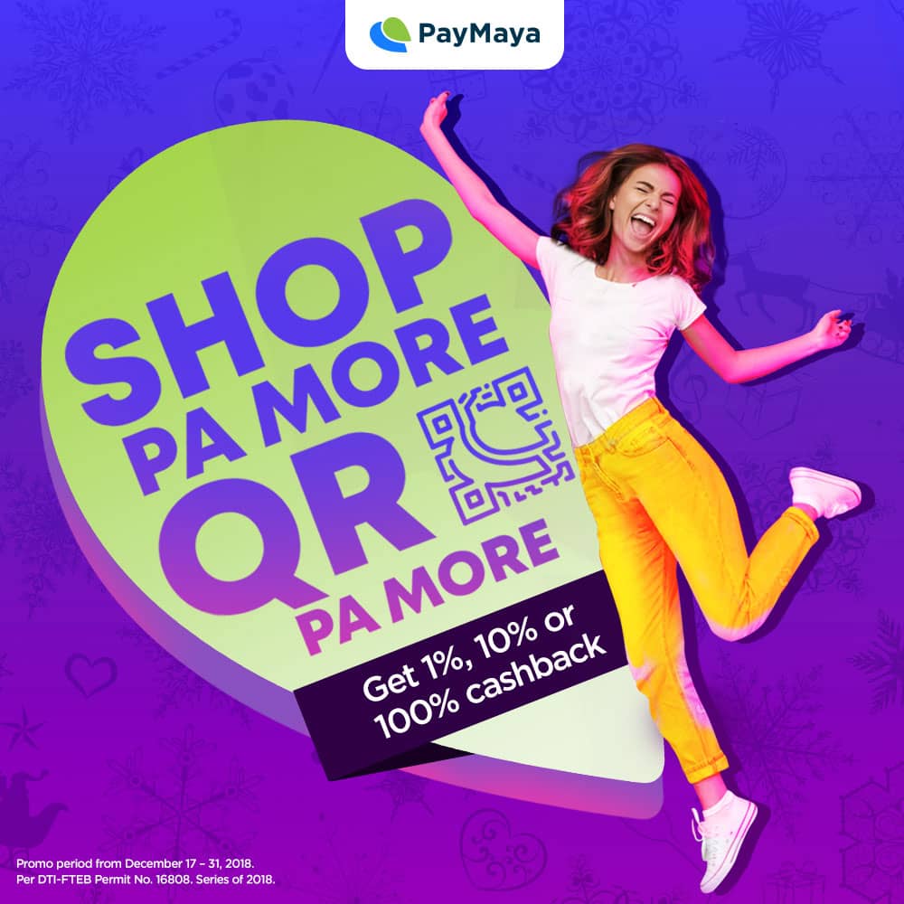 Shoppers can get as much as 100% cashback on all of their purchases whenever they shop in-store using PayMaya QR at all partner merchants nationwide from December 19 until December 31, 2018. To view the full list of PayMaya QR-enabled merchants, visit pymy.co/QRmerchants.