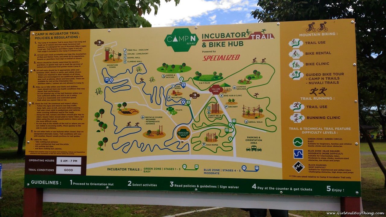 Camp N Incubator and Bike Hub is divided into 3 zones based on the biker’s skills. White Zone or “very easy”, Green Zone or “easy”, Blue Zone or “moderate”. Do not worry, you will never get lost because the trails have traffic and information signs to guide riders.