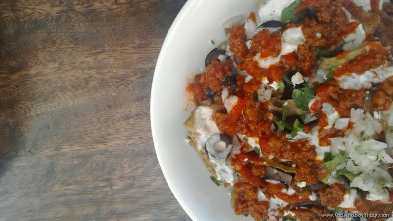 Gourmet Farms’ famous lettuce chips, meat sauce, salsa. olives, and feta cheese.